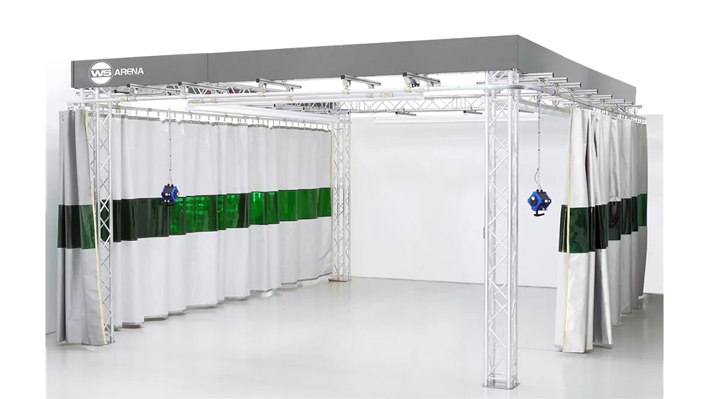 Die WS ARENA BASIS ist die Grundausführung der WS Arbeitsplatzsysteme. Dazu gehört neben dem hochwertigen Traversen-Trägersystem aus Aluminium, eine energiesparende LED-Beleuchtung und ein spezieller Schweißschutzvorhang. Medienversorgung ( Druckluft und Stromanschlüße) erfolgt über 2 Energie-Ampeln